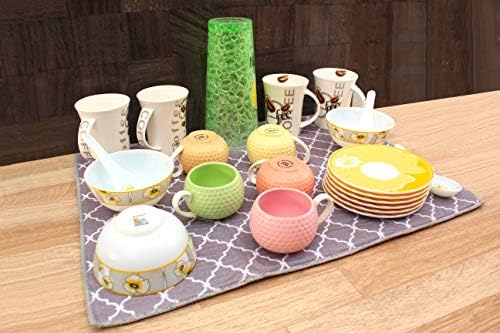 Simply put this Microfiber Utensil Drying Mat for kitchen near your dish washing sink and place your washed utensils on them. This super water absorbent kitchen mat absorbs all the water and is also quick dry and ready for the next use very quickly. The high cushioning on this dish drying mat will also provided added safety to your delicate utensils like glassware and other breakable crockery. Moreover, this dish drying mat can also be used by placing under your dish drainer to soak up all the water dripping out.