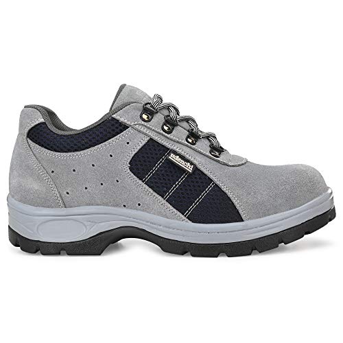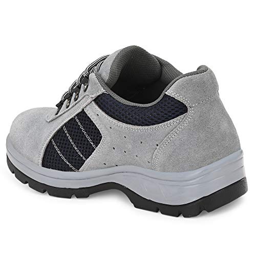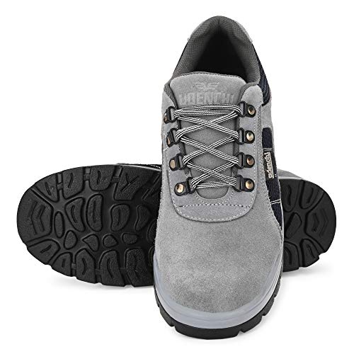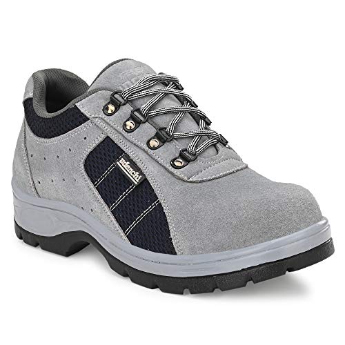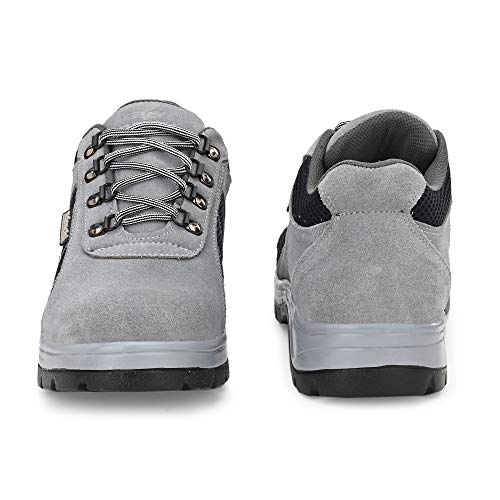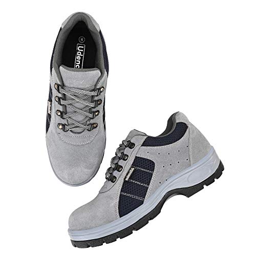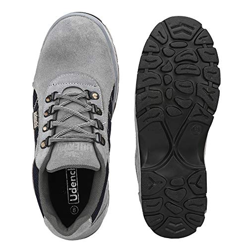 Udenchi UD08GRAY9 Genuine Suede Leather Industrial Sports Safety Shoes With Steel Toe for Men | Size-9 UK, Gray