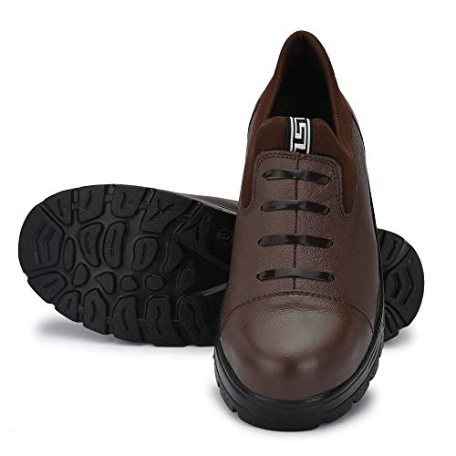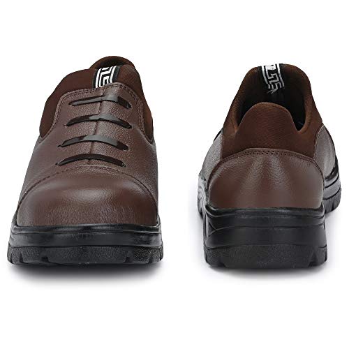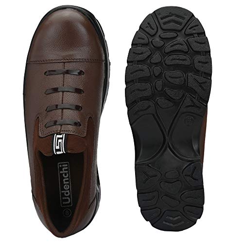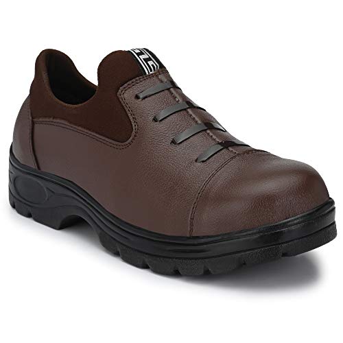 Udenchi UD2907 Men’s Brown Genuine Leather Industrial Slip On Safety Shoes With Steel Toe Without Lace | Size – 7 UK, Brown