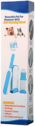 UPVL Pet Hair, Dust, Lint Remover Double Sided, Reusable Brush with Self-Cleaning Base for Clothing and Furniture, Couch, Carpet (Medium, Blue)