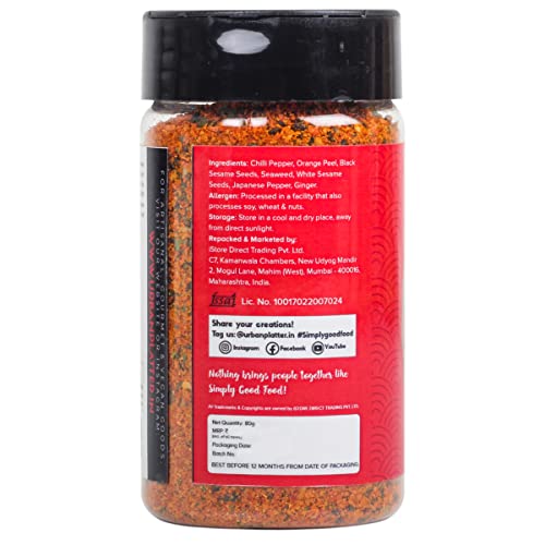 Urban Platter Japanese Shichimi Togarashi Seasoning Shaker Jar, 80g / 2.8oz [an All Purpose Seasoning, Spicy, Flavourful, Vegan Seasoning for Snacks, Signature Japanese Spice Blend]