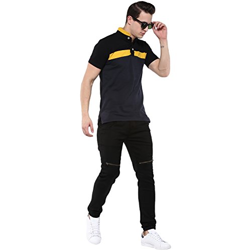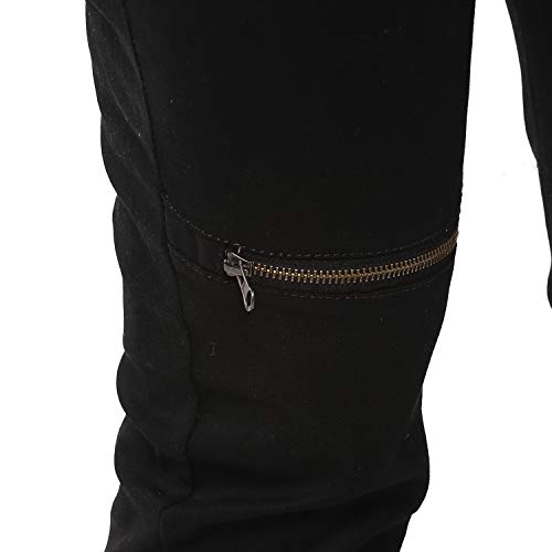 Urbano Trend Males’s Black Slim Match Stretch Zippered Jogger Denims