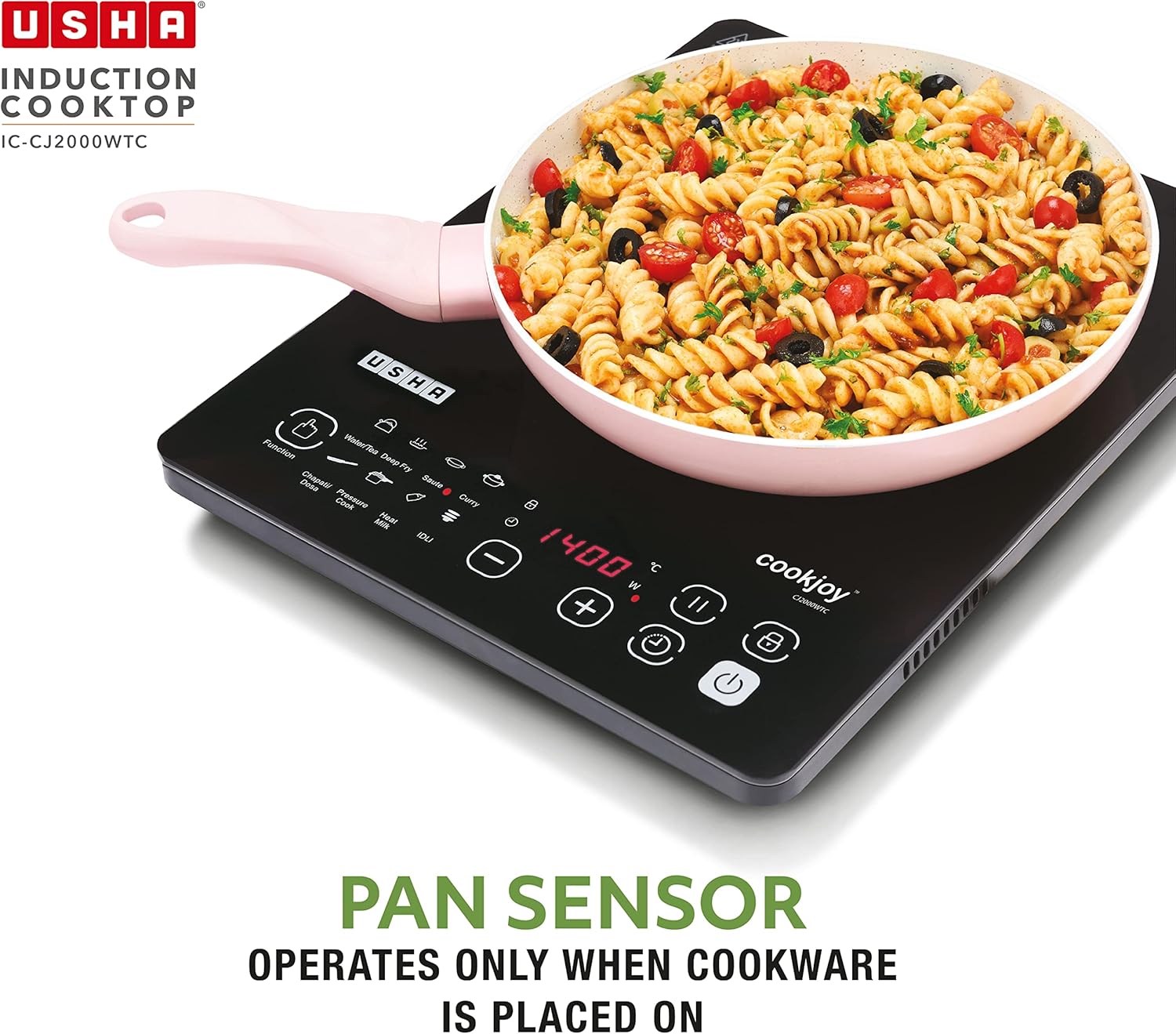 Pan sensor technology – operates only when Cookware is placed on, Flexible cord length 1.2 m and 10 Amp Plug with earthing for safety.
