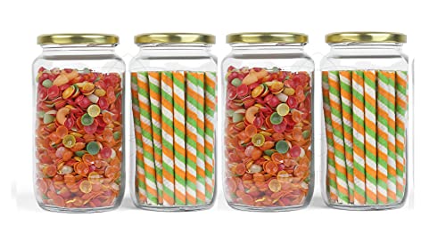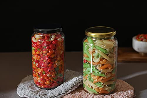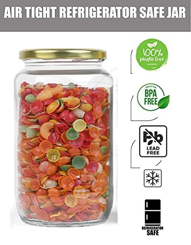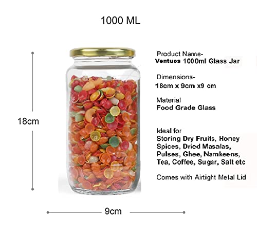 Ventuos-Glass jar capability 1kg / 1 ltr capability / glass jar 1000 Gram set of 6 with Air Tight gold Cap. Finest to make use of in Kitchen, Dwelling, Workplace, Lodge, Dhaba & Restaurant for Storage & Container.