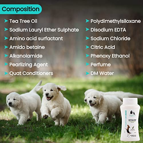Vetglow Dog Shampoo for Labrador, German Shepherd, Golden Retriever 200ml – Dogs Puppy Shampoo for Shih Tzu, Ticks Fleas, Skin Treatment, Pomeranian