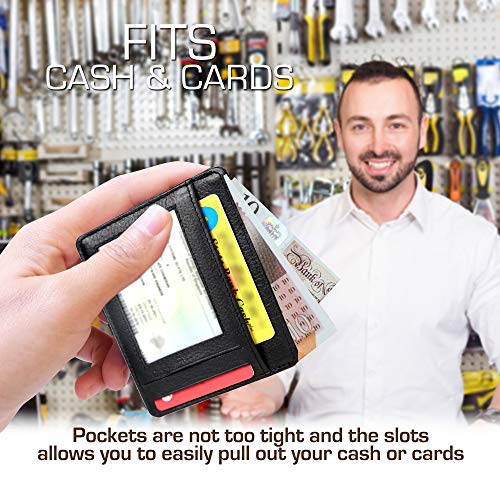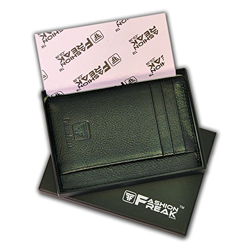Vogue Freak Leather-based Credit score Card Holder -Slim Minimalist Entrance Pocket RFID Blocking Leather-based Wallets for Males Girls (Black)
