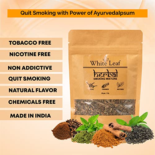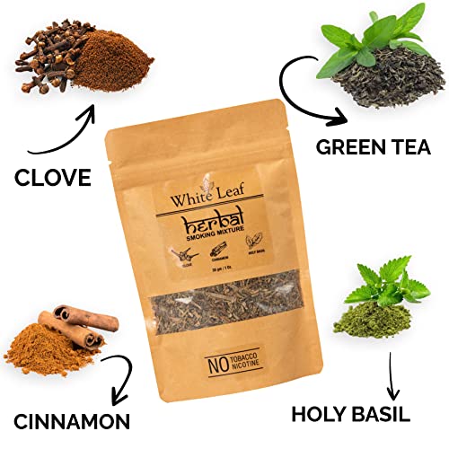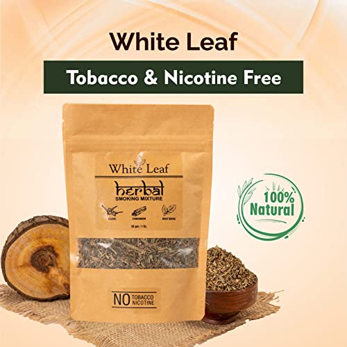 White Leaf Tobacco & Nicotine Free Smoking Mixture With 100% Natural Herbal Smoking Blend 1 Pack 30gm