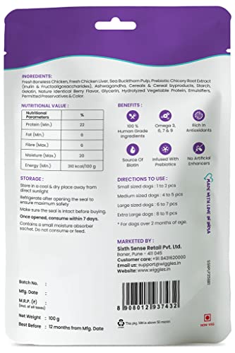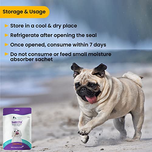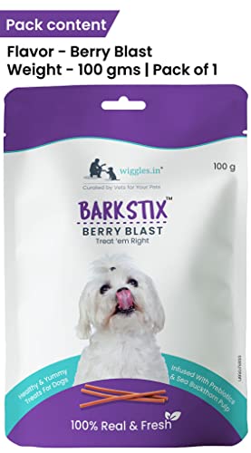 WIGGLES Barkstix Dog Treats for Training Adult Puppies, 100g – Soft Chew Stick Hip, Joint, Skin & Coat – Sea Buckthorn Pulp, Ashwagandha (Berry Blast)