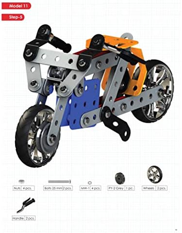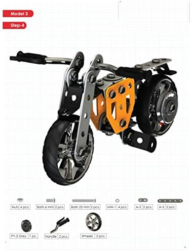 This kit comes with all the tools, and parts to build 14 different models, one at a time. After completing these 14 models, the builder can use the nuts bolts, and other versatile parts to create many more models and projects. The manual provided can help you build any of the models mentioned in the set. Just remember these few points in your build: 1. Follow the steps mentioned in the manual and watch out for the notes mentioned. 2. Always remove the parts required in the step aside. After completing the step, noticing if any parts are left is a good way to recheck before moving on.