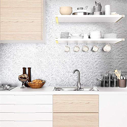 Wolpin Wall Stickers Wallpaper Kitchen Aluminium Foil (60 x 200 cm) Oil Proof, Kitchen Backsplash Wallpaper Self-Adhesive Anti-Mould and Warmth Resistant for Partitions Cupboards Drawers and Cabinets, Silver