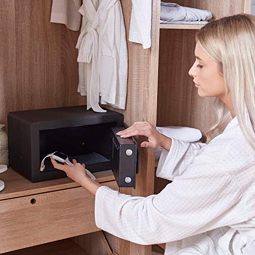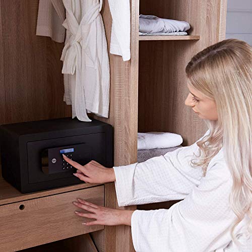At Yale, we pride our selves in protecting the things that matter the most to you. The High Security Motorised Safes will keep your most important belongings secure and safe with a laser cut door for protection gainst attacks and with a pin code, you are able to gain quick access to your safe. Scare away any unwanted visitors with lock down for one minute after 3 incorrect attempts. The internal light gives you clear Visibility of your valuables and the internal hooks makes it more convenient for you to keep your things organised and clearly displayed. Whether that™s your camera to capture those special moments or a sentimental belonging, we have the right safe to suit you. You Value it, We Protect it. Box contains: 1 x Safe 1 x key 4 x AA battery 1 x Pack of fixing bolds to secure the safe to the wall or floor. 1 x user manual/ fitting instructions.