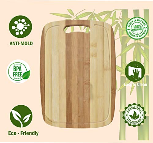 Yellow Weaves Natural Bamboo Wood Cutting Board/Chopping Board with Juice Groove for Kitchen (24×34 cm)