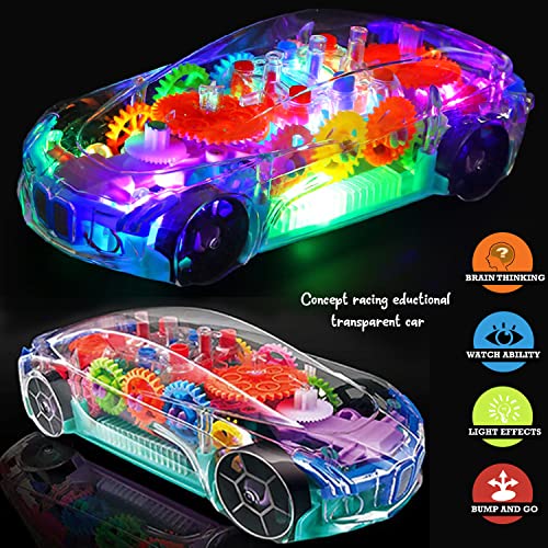 360 Diploma Rotating Clear Idea Racing Automotive with 3D Flashing Led Mild .Multi useful,colourful lighting, clone gear mechanical system, superior sound results. Clear Design. Can view the gear inside, assist baby to know mechanical idea earlier. Gear driving impact. Improve Mind Improvement and construct Little one’s Curiosity for New Issues. Totally different Shade helps baby cognitive means. Created from heavy-duty plastic, the toy has no small components to it in order that youngsters can get pleasure from it. To function toy automotive you should have 3 x AA batteries (INCLUDED). This may be one of the best reward ever to offer for little youngsters. They’ll get pleasure from watching the dancing automotive with all his pleasant options. Nice to offer as a Birthday Reward, Vacation or Christmas