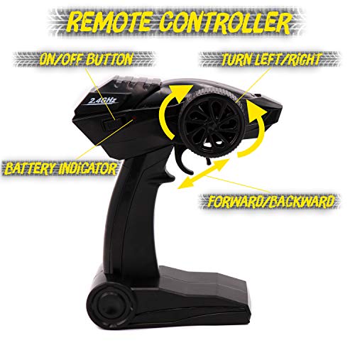 2.4GHZ WIRELESS CONTROL: Full functions controlled by the 2.4GHz controller, with which you can control the car to go forward, backward, turn left, turn right,have more fun to play.